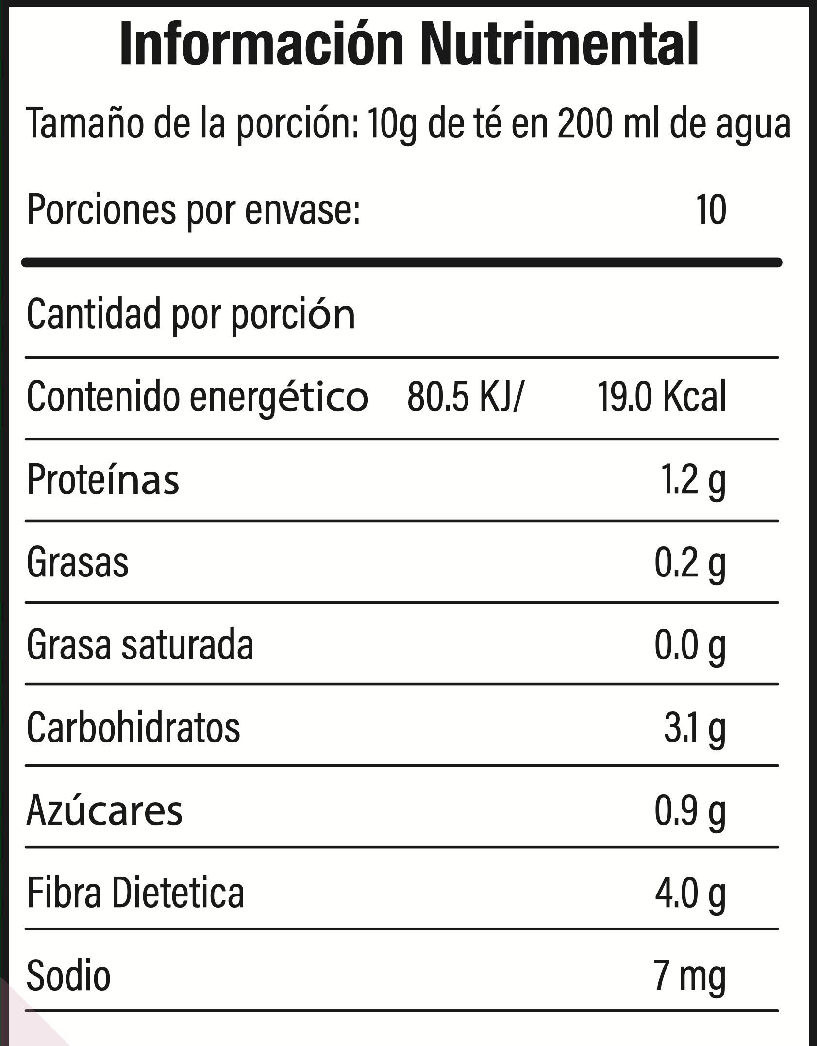 Te negro, cardamomo, jenjibre, jamaica, hierbas aromáticas y mezcla fina de condimentos.